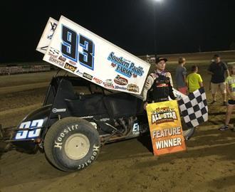 “ This is the best the track has ever been” explained Haudenschild in victory lane, “Hats off to the track crew. I really hope the fans enjoyed that, thank all of you for coming out tonight. I just want to thank all of my guys again including Bonzai and Zach. We couldn’t do it without Southern Pacific Farms. They help make it all happen. I kind of figured most of the guys starting ahead of me would run the bottom” said Haudenschild. “ The door kinda opened up for me on top and we made it happen.”